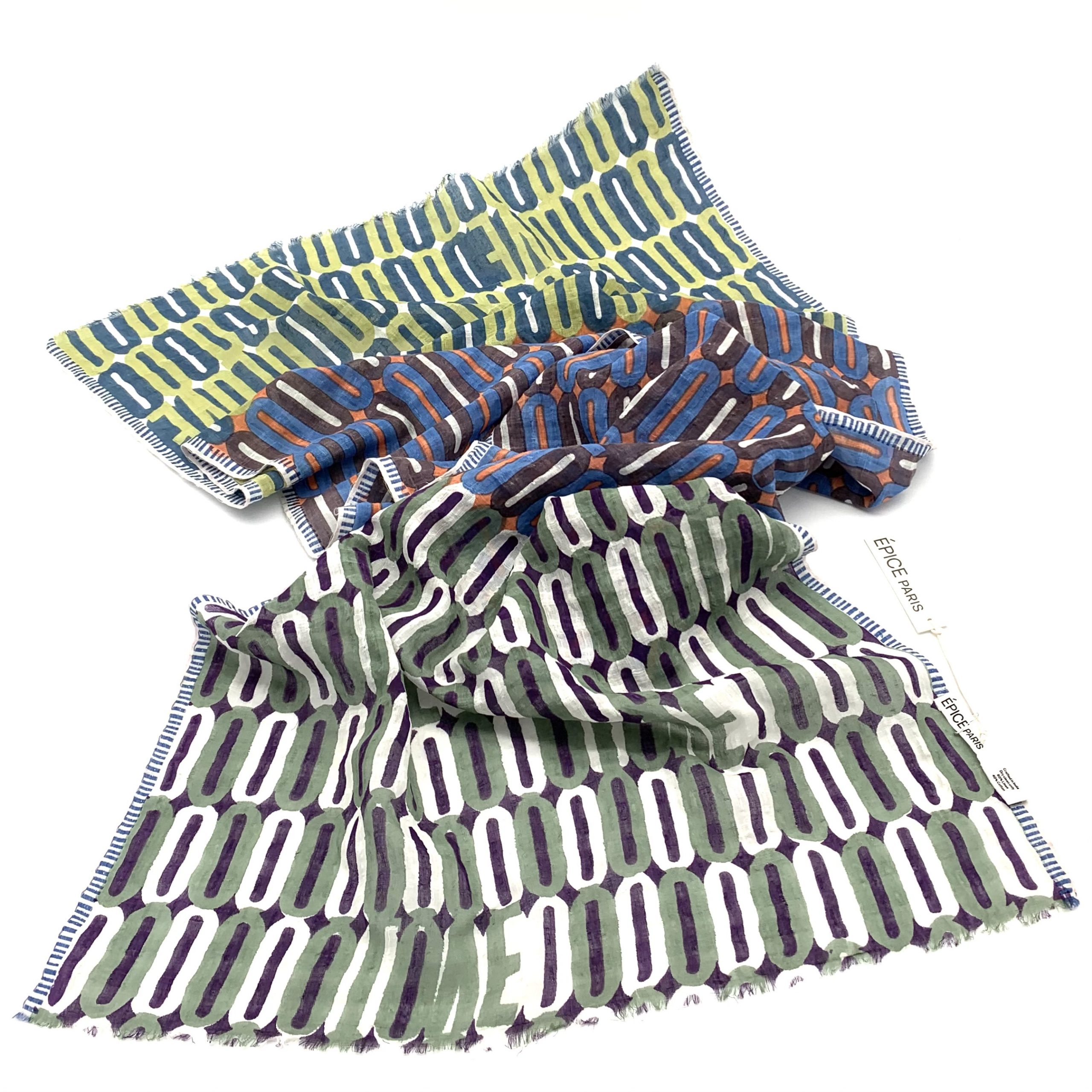 Die dänischen Designer Bess Nielsen und Jan Machenauer gründeten das Label Épice 1999 in Paris. Es steht für außergewöhnliche Schals und Tücher für Herren und Damen. In ihren Mustern verbinden sich das Licht und die Farben Skandinaviens und Indiens. Die feinen Materialien und Designs werden für jede Saison im Studio in Kopenhagen kreiert und von Hand in Indien gewebt und bedruckt.