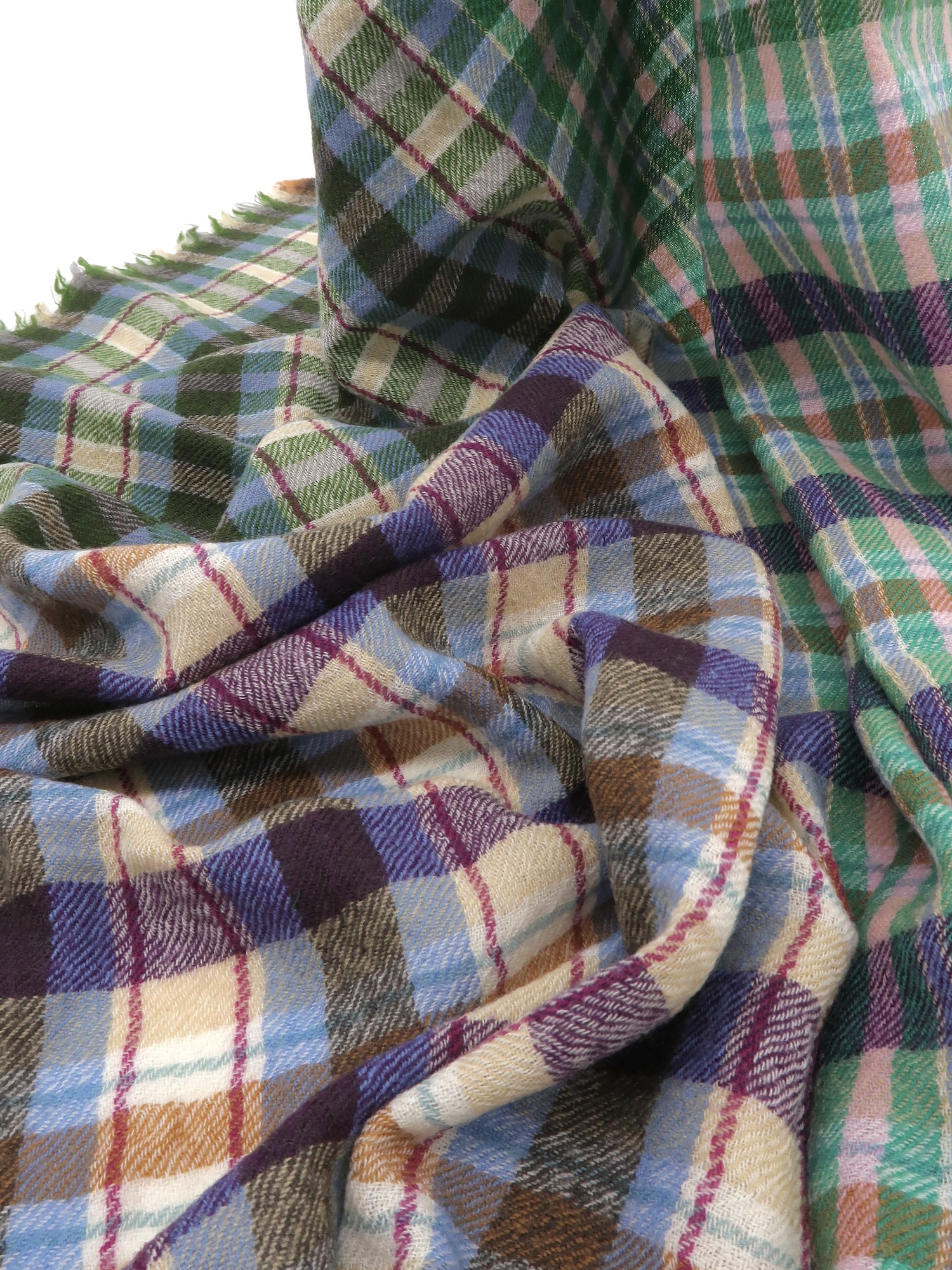 Das Wolltuch in gemischtem Karo ist ein schönes Accessoire für Damen und Herren und passt gut zu einer zeitlos, klassischen Garderobe mit Twist. Die besonderen Farbkombinationen in dem luftig, leichten Wollgewebe machen dieses Stück zu einem schönen Begleiter für kühle Tage. Karierte Wolltücher gibt es in verschiedenen Größen, als Schal, Stola oder Quadrat.