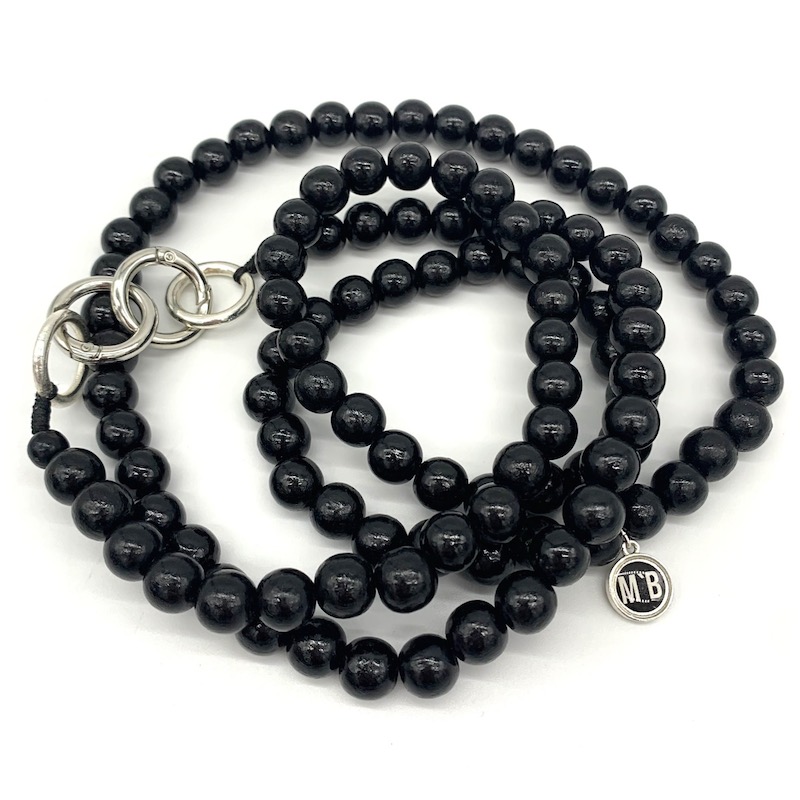 Die bunte Handykette aus 108 gefärbten Holzperlen gibt es in vielen verschiedenen Farbvarianten. Die Ketten haben eine Länge von ca 130 cm. Sie werden händisch verknüpft und auf einen hochwertig gewachsten Baumwollfaden aufgefädelt. Durch zwei runde Karabinerringe mit Klickverschluss kann man sie kinderleicht in ein passendes Cover einhängen.