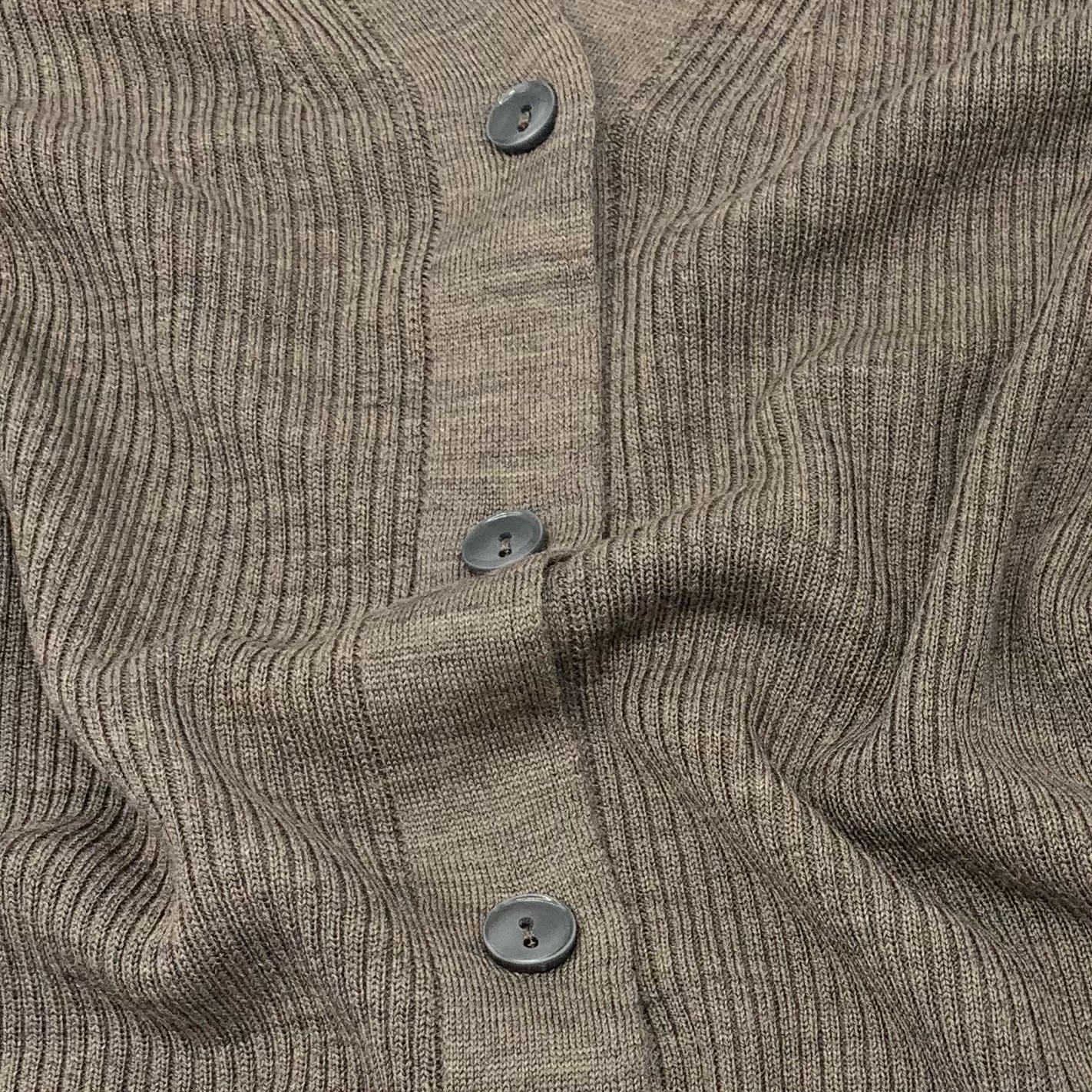 Der Cardigan aus feinem anliegenden Merino-Rippstrick hat lange Ärmel, einen tiefen V-Ausschnitt.