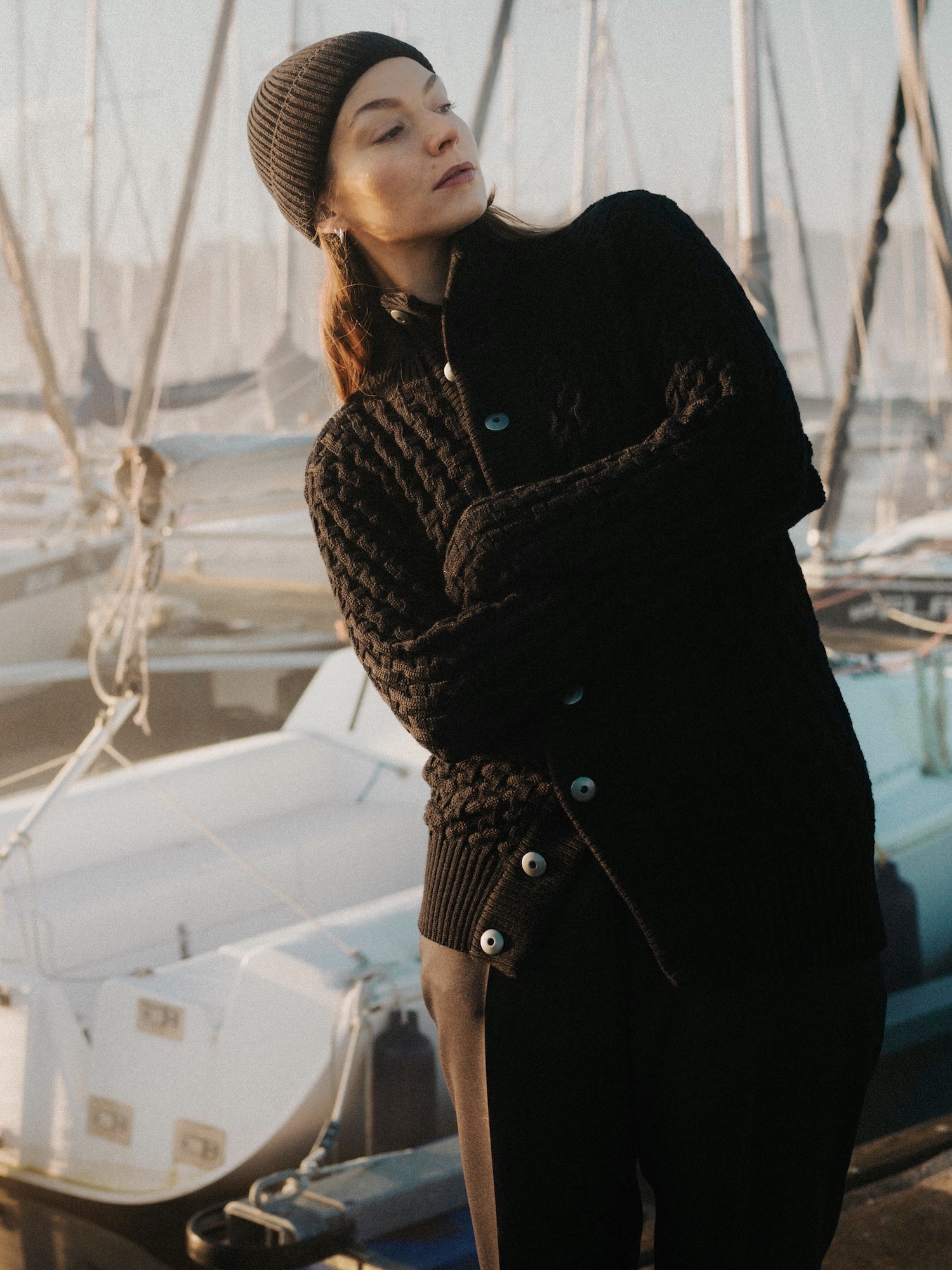 Langjährige treue Begleiter sind die dänischen S.N.S. Herning – Pullover, Strickjacken, Pullunder und Mützen, die vor den Elementen schützen. Gegründet 1919 von Søren Nielsen Skyt in Herning, hat das Familienunternehmen sich auf qualitätsvolle Strickwaren spezialisiert. Das eigens entwickelte Maschinenstrickverfahren ist das Geheimnis hinter den außergewöhnlichen Eigenschaften der Produkte. Es macht die Pullover und Strickjacken wasserabweisend, wärmend und atmungsaktiv, ideal für Fischer auf See. Auf den Strickmaschinen aus den 1950er Jahren wird bis heute dieselbe hohe Qualität wie damals sichergestellt.