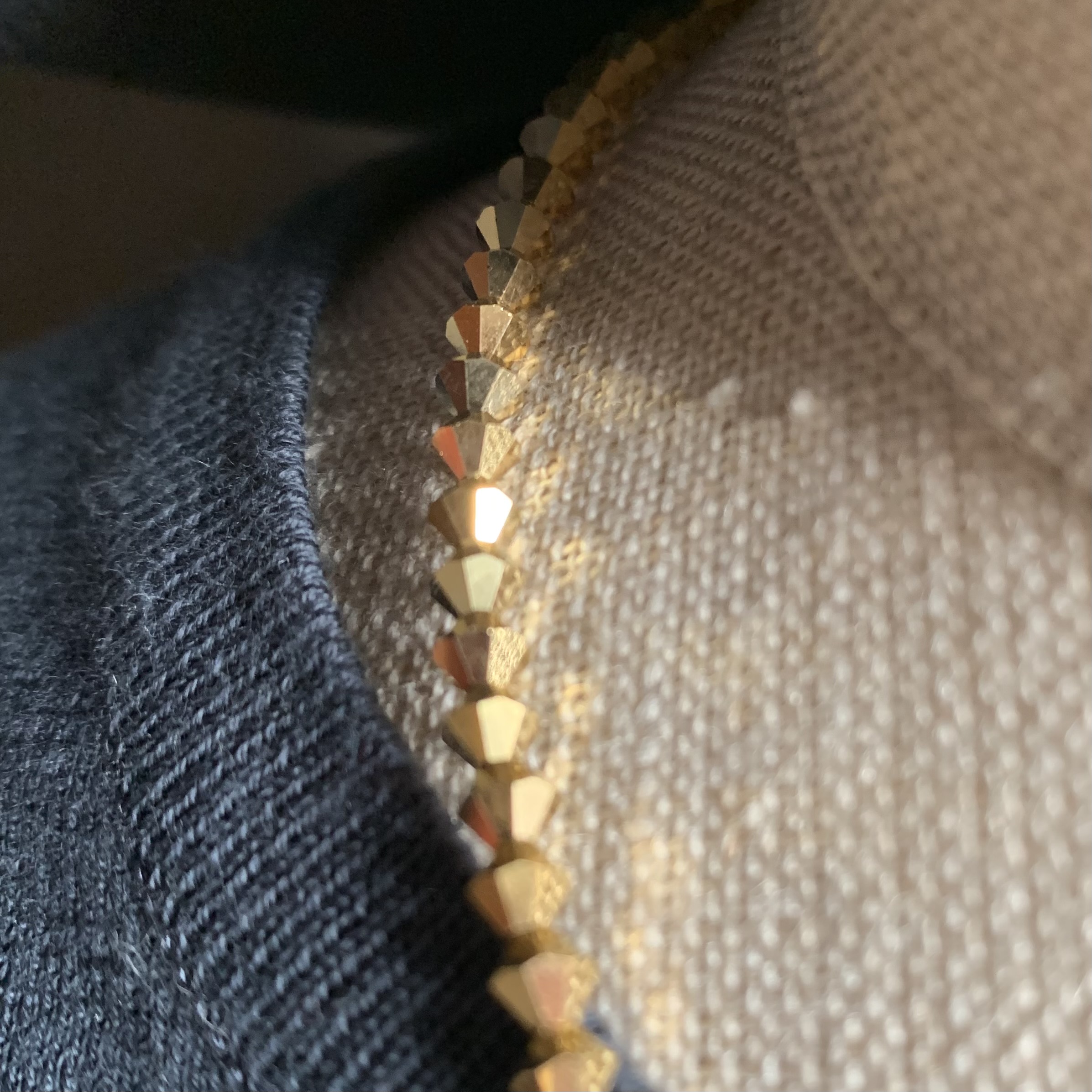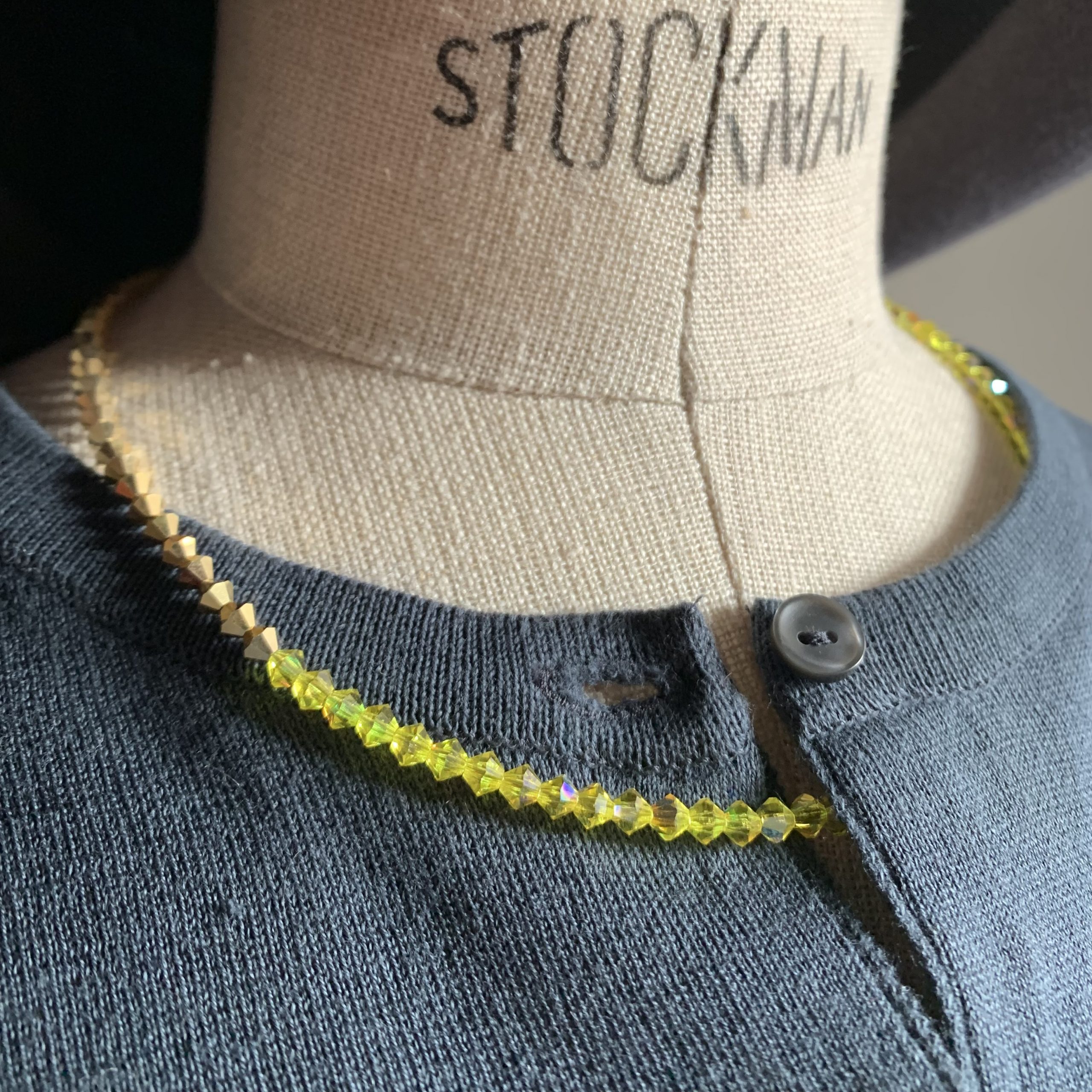 Zur einen Hälfte golden und glitzernd zitronengelb zur anderen Hälfte, ist diese Kette ein modisches Accessoire für Büro, Strand, Party und elegante Anlässe.