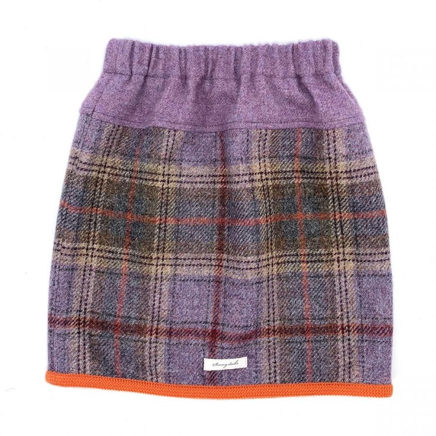Dieses Röckchen aus wärmendem Tweed soll am besten über Strumpfhose oder Hose getragen werden als wärmende Schicht für ausgedehntes Spiel auch auf kühleren Böden.