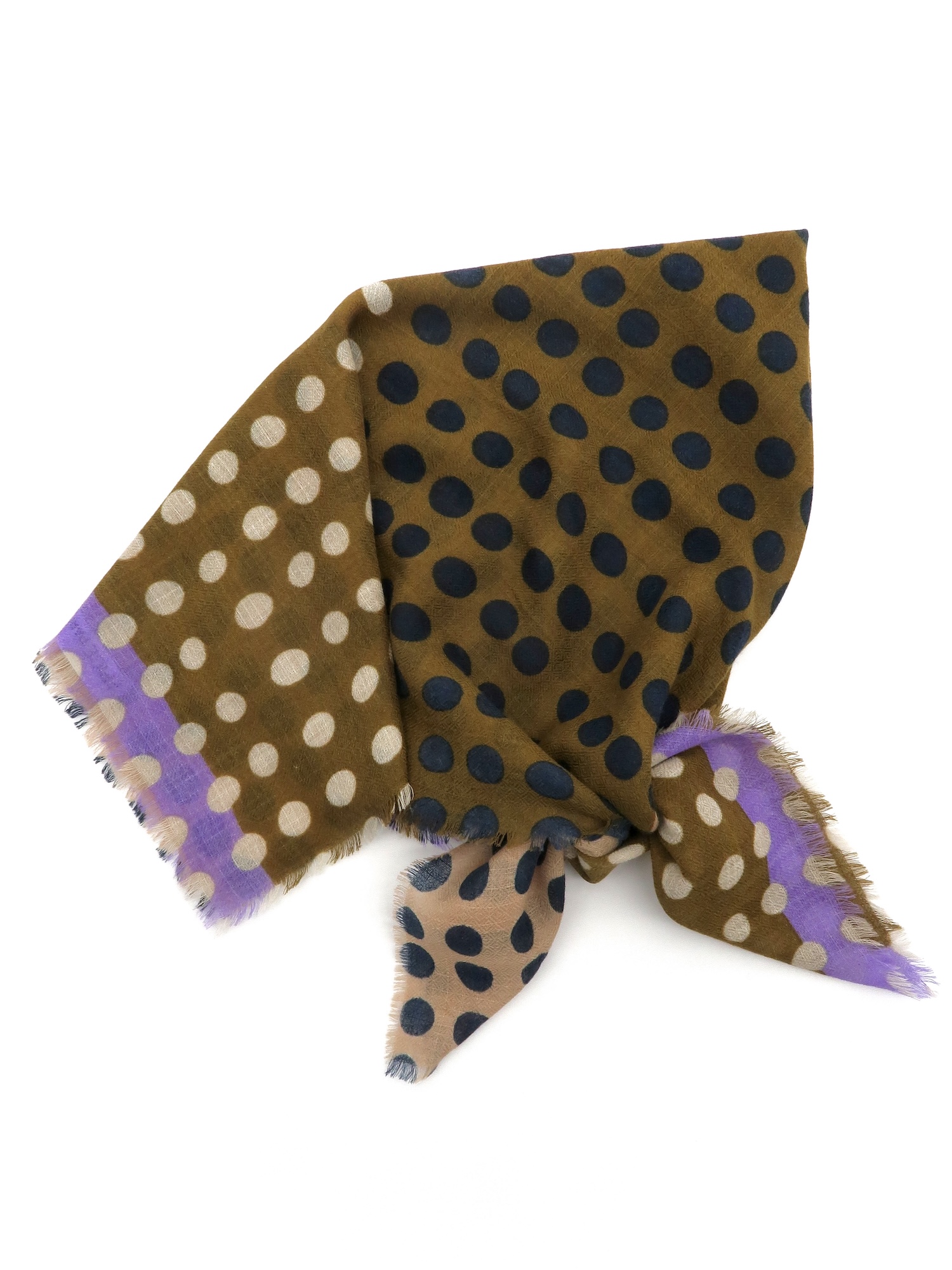 Diese vielfarbige Tuch mit Streifen und Punkten ist handgewebt und handbedruckt und ein lebendiger Eye-Catcher für die kühlere Jahreszeit.