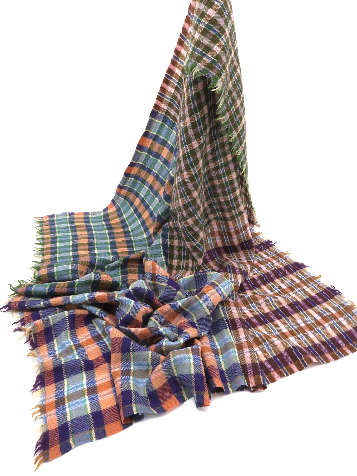 Das Wolltuch in gemischtem Karo ist ein schönes Accessoire für Damen und Herren und passt gut zu einer zeitlos, klassischen Garderobe mit Twist. Die besonderen Farbkombinationen in dem luftig, leichten Wollgewebe machen dieses Stück zu einem schönen Begleiter für kühle Tage. Karierte Wolltücher gibt es in verschiedenen Größen, als Schal, Stola oder Quadrat.