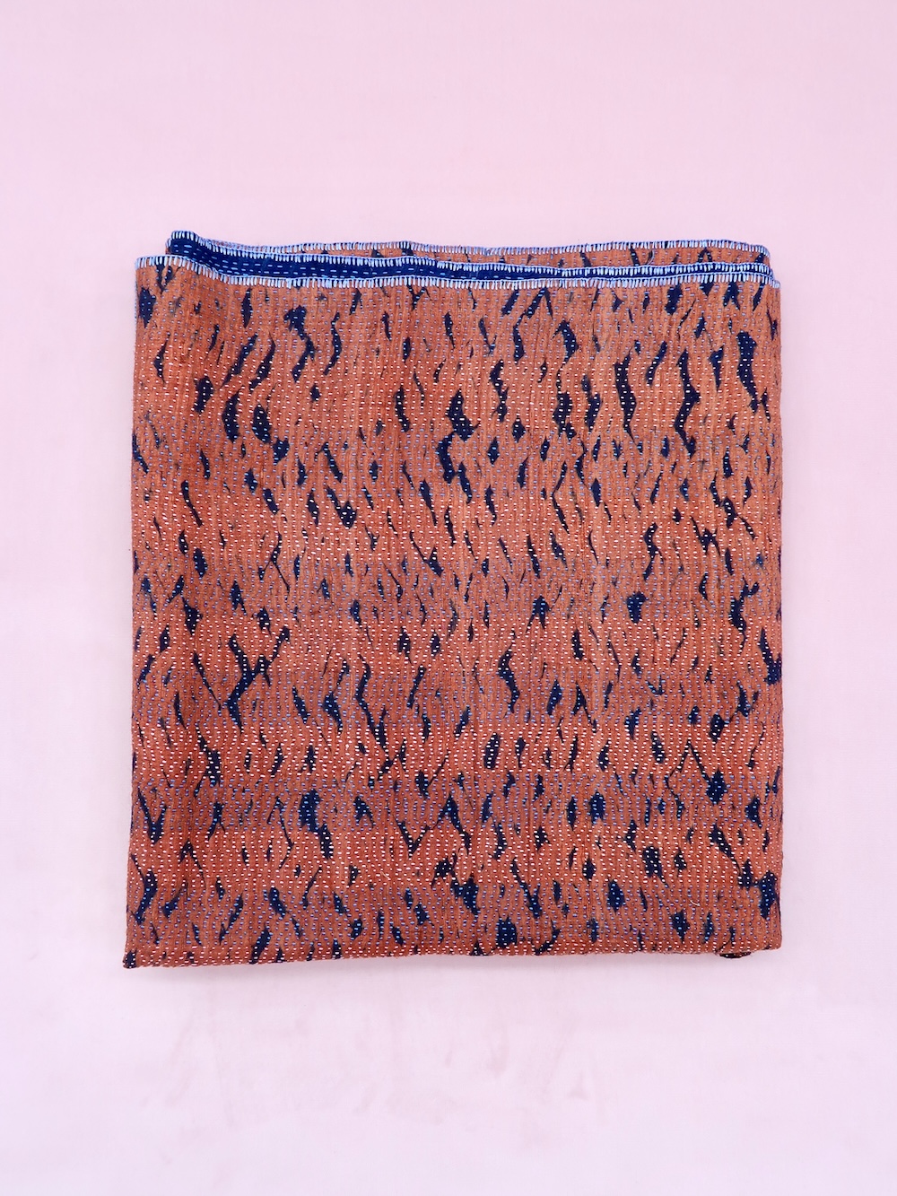 Living Blue – Tuch Seide – Kantha Quilt indigo ziegelrot