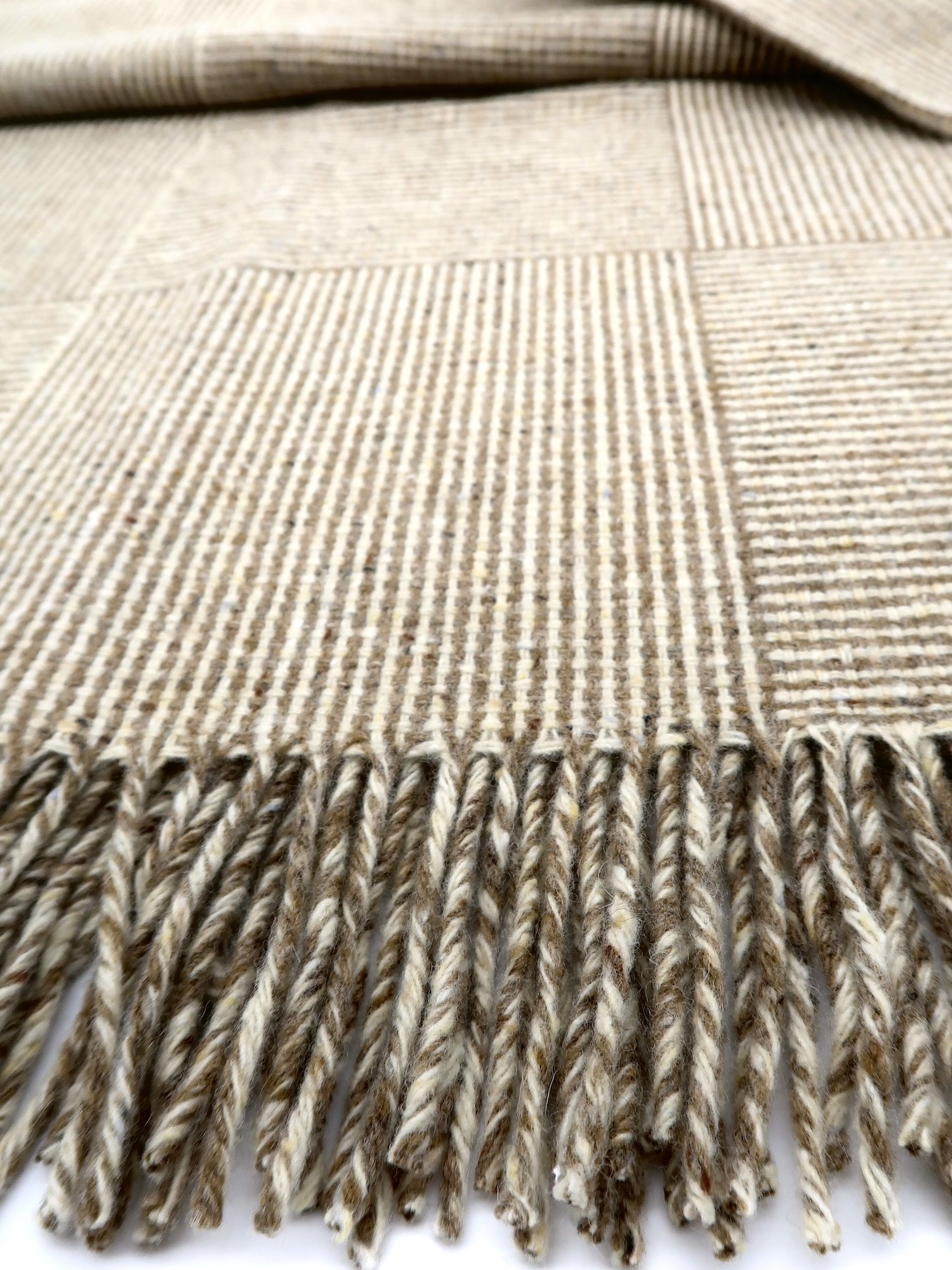 Die Wolldecke „Basket Throw“ ist eine elegante Wolldecke aus feiner Merinowolle mit dem typischen zweifarbigen Webmuster. Das dezente Gewebe in schöner Färbung hat die für die Donegal-Weberei typischen kleinen Farbreflexe und wirkt dadurch sehr lebendig.