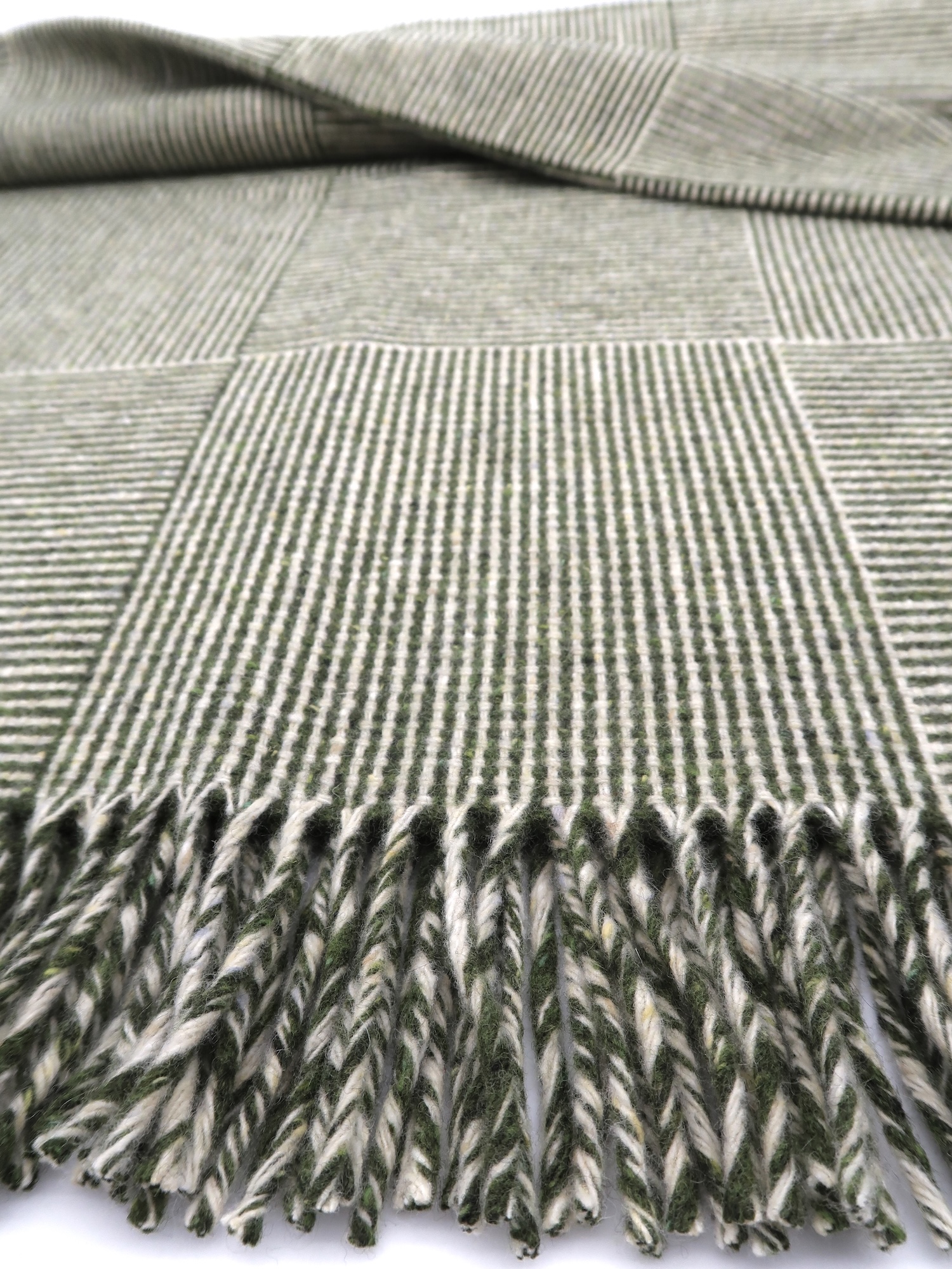 Die Wolldecke „Basket Throw“ ist eine elegante Wolldecke aus feiner Merinowolle mit dem typischen zweifarbigen Webmuster. Das dezente Gewebe in schöner Färbung hat die für die Donegal-Weberei typischen kleinen Farbreflexe und wirkt dadurch sehr lebendig.