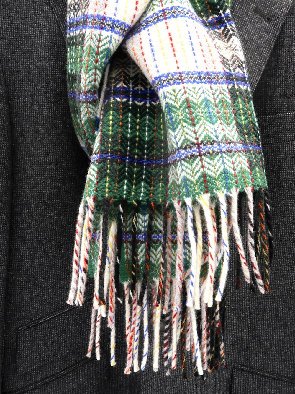 Der Wollschal „Fine Diamond“ ist ein perfekter Herren- und Damenschal und passt gut zu Tweed und Wollmänteln. Die klaren, frischen Farbvariationen mit den farbigen Linien im Rautenmuster machen diesen Schal zu einem besonderen Blickfang im Wintergrau.